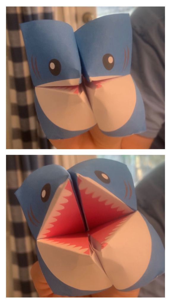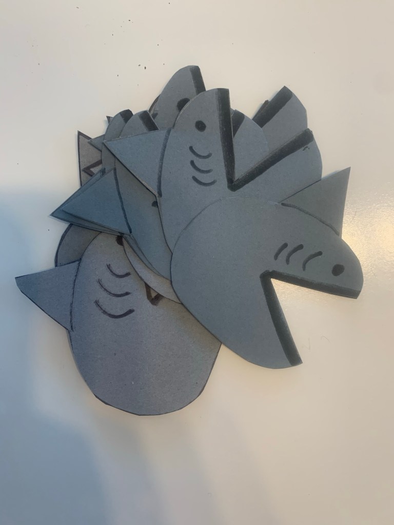 Well pals, yesterday was a blast. We learned a ton of very obscure, most likely unimportant, shark facts, and highly enjoyed making our moveable sharks. They’ve been played with repeatedly, and Im proud to announce the google-y eyes have all held up. Thanks a bunch Elmer’s glue. I was skeptical.