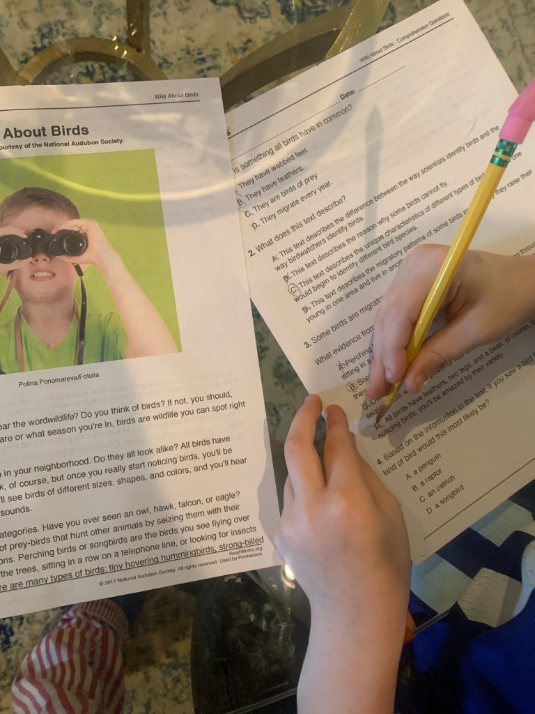 William started his academic week with a really fabulous Read Works article about birds. He’s been reading so well recently, and it’s so nice to hear him using proper expression as he reads. I’m trying desperately to ween him off so much non fiction, but it’s a constantly battle I start following through on, then give up on. This June! That’s the plan. He’s turning six and I’m going on a major fiction push. We’ll see how long it lasts this time! Whilst he worked Arthur sat on the floor and threw things around. He’s being extra specially challenging recently. I hope it’s teething and not a personality shift to major pushing of boundaries, add that to the list of things to investigate this June.