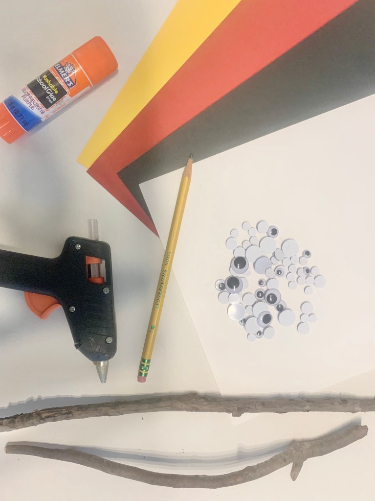 Whilst I dealt with little Arth, who was having his own private meltdown because I wouldn’t let him into the deck to pour the dogs water bowl all over himself, I let the boys hunt for sticks. This part of the craft was completely randomly added in last minute. If you don’t have sticks/don’t want sticks/ have a stick phobia, then skip it entirely. If you need to get your kids out of the house for a little, so you can take a deep breath and do something else that needs to be done, go with the stick idea. The real beauty of sending the kids to go and find ANYTHING, is that if you need more time, when they come back you can say it’s not quite what you were looking for, and send them back out. What I hadn’t bargained for was that once they had their sticks William insisted that he had to have vulture feet to grip the branch. I had no template or plan for this. So I told him that was fine. As long as he drew and cut out his own. That’s why me and Teddy just have floating vultures, and William, always the pragmatist, has a vulture has the anatomy to cling to the stick.