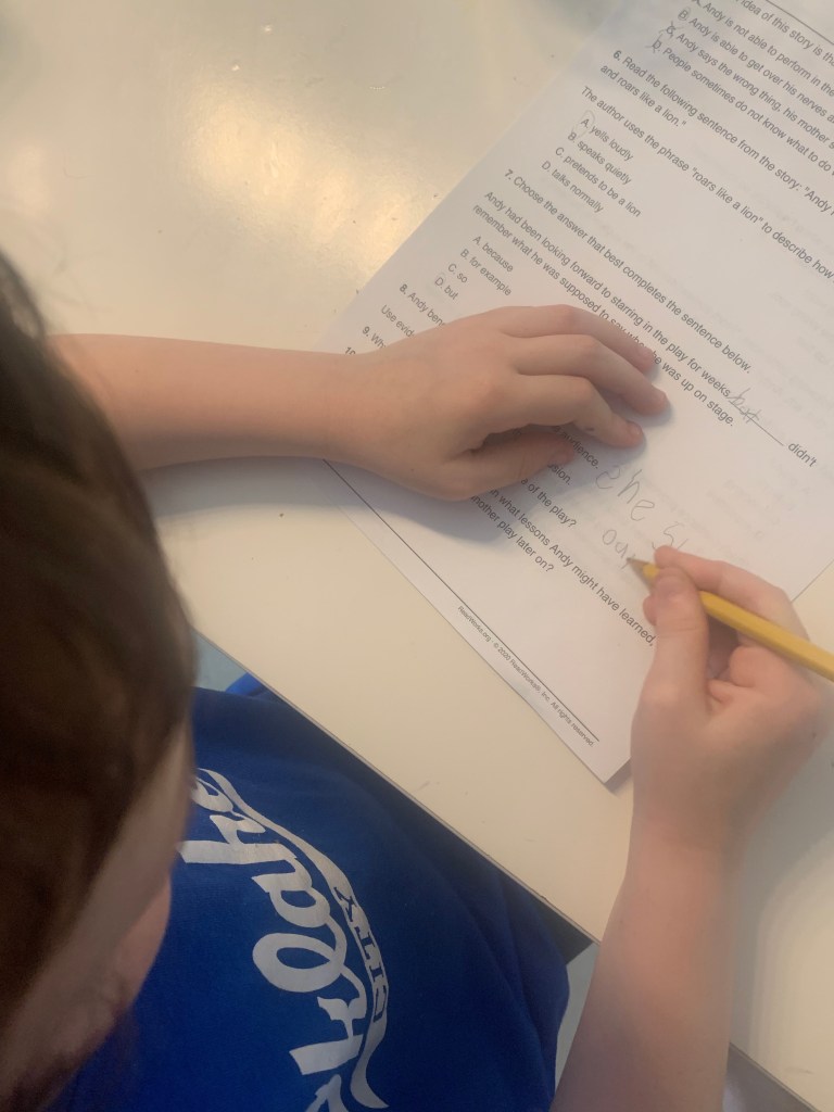 William had two different activities. The first came from the packet of pirate activities that I also used for Teddy. I printed him the cut and sort activity because William is really very messy, and completely neglects any sort of non essential fine motor skill. I’m hoping that this summer I can give him tons to do with craft scissors and glue sticks, and he will naturally strengthen in those areas. I know I’m probably never going to take him really “care” about staying in the lines, or the best spots to place glue to use a small amount effectively, but I am hoping I can at least stop him from cutting essential parts of diagrams off because he’s rushing. His second activity was a read works (linked here). It was a fiction piece which I thought would mean he would struggle with the questions, but he did a super job, even if his absolutely rubbish mother forgot to print answer lines again. I’m the worst ever. However, on a positive spin, we completed day one of our new theme, everyone survived, google did us proud, and there was minimal effort or prepping required from me. Onwards to day 2, see you there!