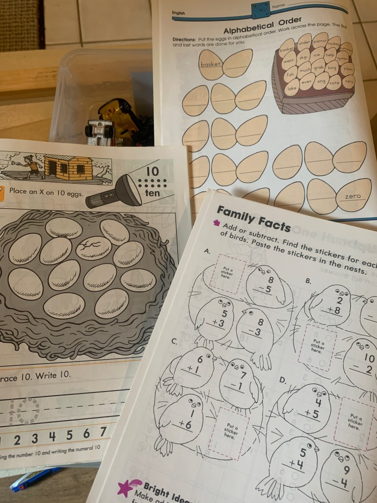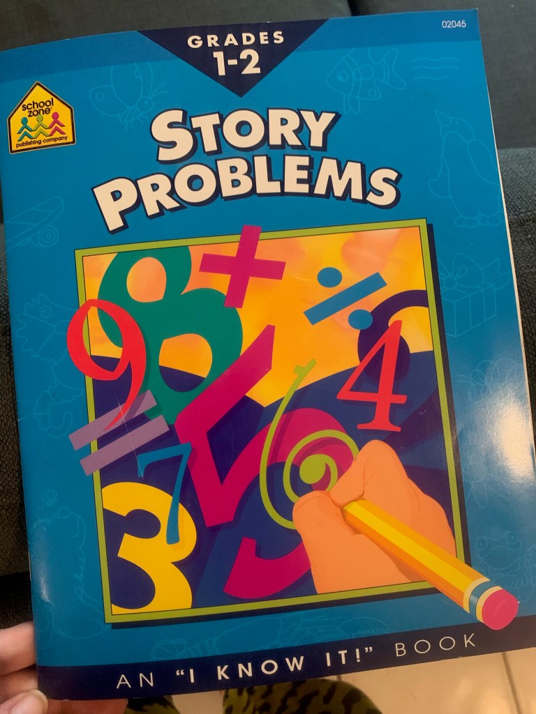 From feathery foul, to some incredibly vintage academia. My parents in law often send the boys large care packages from New York. They are a magical mystery assortment of all different things. Some new clothes, some new toys, some old toys of my husbands from 1995. Most recently they mailed an enormous box of kids workbooks from the 90s. You know the type, the ones you give kids on a road trip, or to supplement their homework. But what good are second hand used workbooks? Ah dear reader, so naive. Even at 6 years old, J had the brain of an 85 year old squirreling away for a long Siberian winter. He looked at all the workbooks, but he never wrote in them, just in case he needed them later. Little did he know, 25 years later. That day would indeed come.