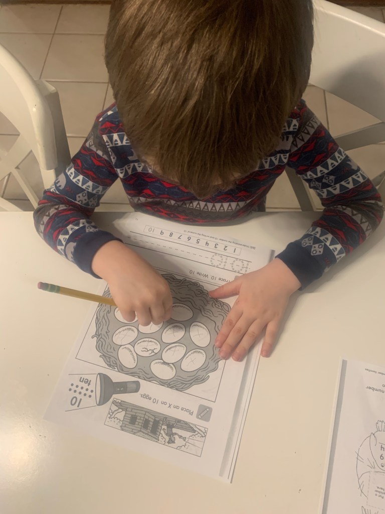 Teddy is particular loves a worksheet. William is less excited by them, but he’s actually experienced proper school, and having to do them. I’m sure the novelty will wear off for Ted too. For now though he squealed when he saw them and instantly wanted to know where the spot was to write his name. Teddy had a sheet on the letter 10. It was very appropriately leveled for him, and he adored crossing out 10 eggs, and then copying the number at the bottom. This was ideal as I had to help explain to William how to alphabetize. It honestly never crossed my mind that he wouldn’t know how to do that. Once I’d explained it he rattled through it, and then moved onto the math. In a weird twist the page came with stickers to fill in the gaps. William asked if he should lick them like a stamp, however due to their decrepit age, I was concerned about a Costanza wedding incident, so I told him to keep his tongue to himself. Hows this for a weird twist, we didn’t need to lick them, or use glue, because after 25 years the stickers were still sticky. I was completely amazed, and slightly scared. I dread to even imagine what product survived 25 years in an attic in NY.