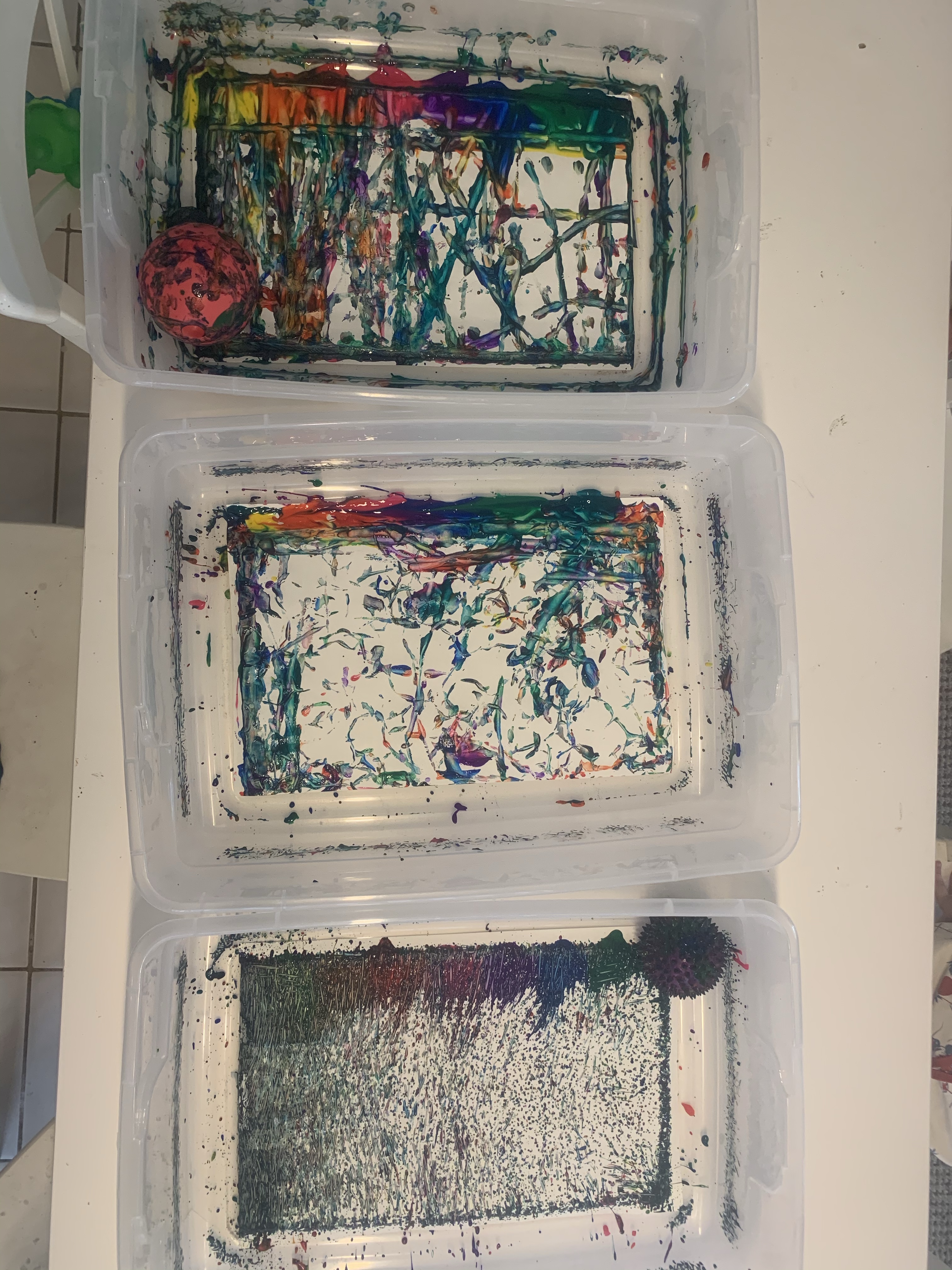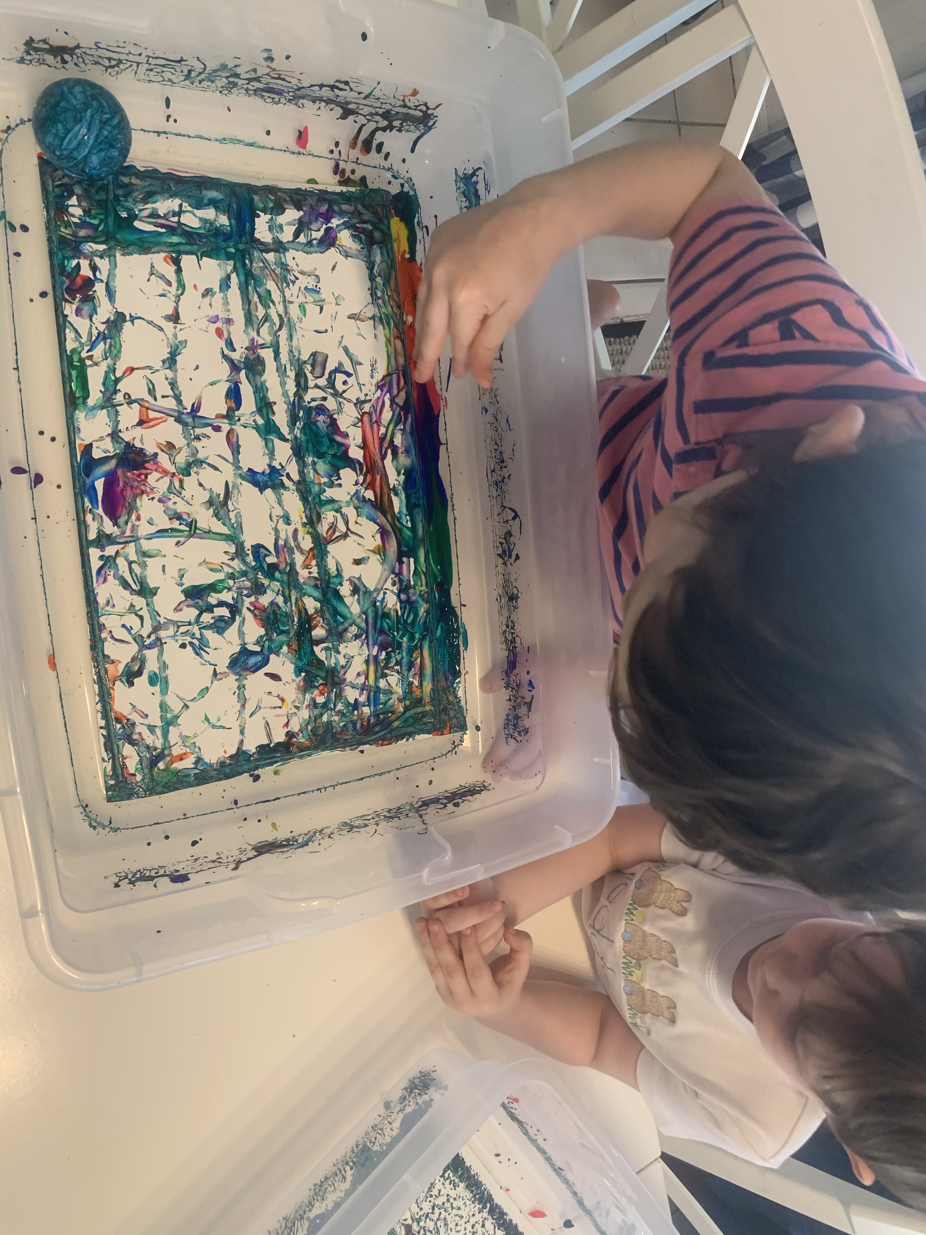 Quick shout out to my messy trays. I had looked around for formal messy trays, the tuff tray is a popular brand. However once I saw the price I was completely put off them. I’ve got a trio of kids, and it’s pretty rare we’re not doing something at least in a pair. I simply couldn’t reconcile spending the amount of money they wanted me to spend to get 3 of the things. Enter the humble under the bed storage box. At $4.35 each they are the best value for money you can find. I got mine here. But if you’re in the UK these look fab.