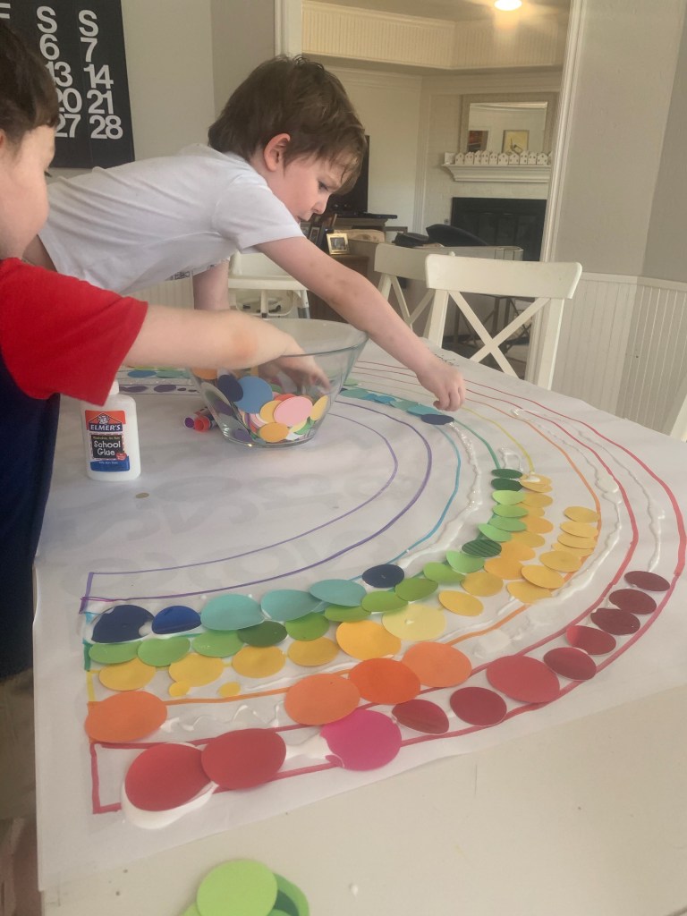 I managed to get a huge amount of stuff done whilst the boys were working. They finished much more quickly than I anticipated, the worked in almost complete silence which is a major indicated that they are completely focused. See below for their finished rainbow!